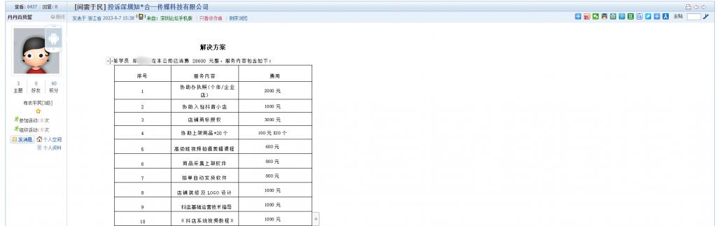 12、帖文《投诉深圳知*合一传媒科技有限公司》
