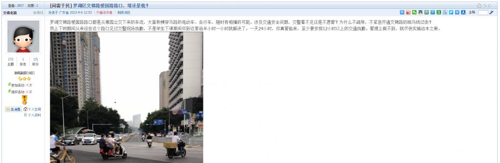 17、帖文《罗湖区文锦路爱国路路口,堵还是疏?》