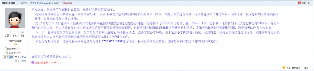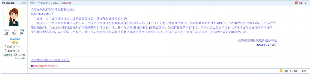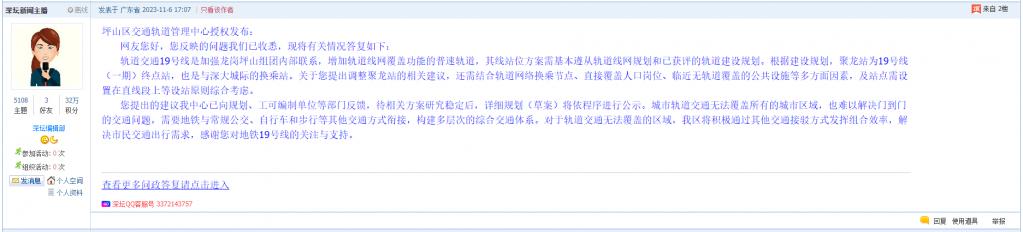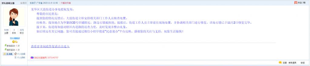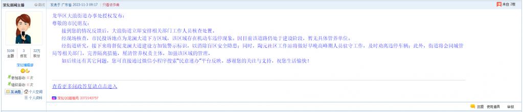 各职能单位如需对网友反映的问题进行回应,可在深圳论坛注册官方账号并通过认证,回帖进行回应。