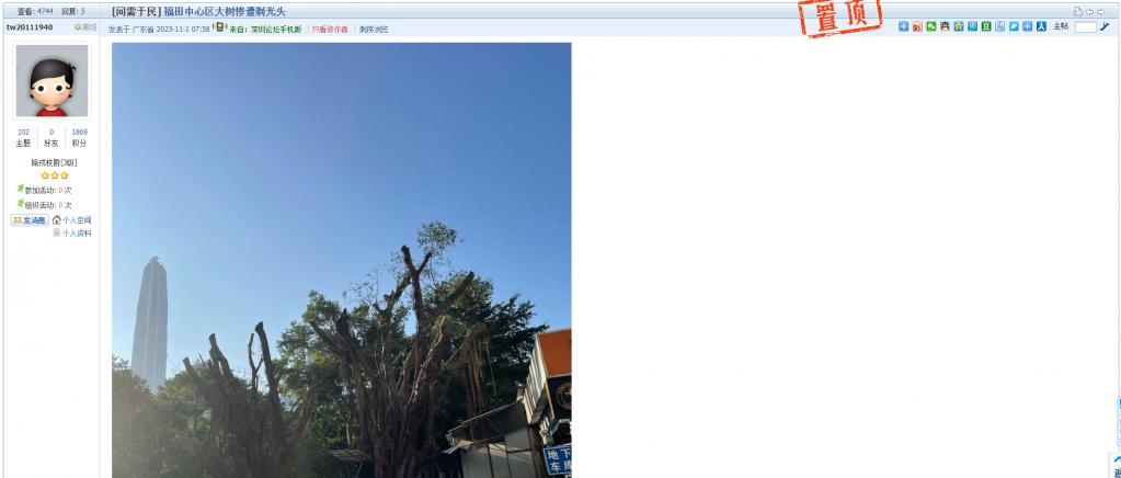 9、帖文《福田中心区大树惨遭剃光头》