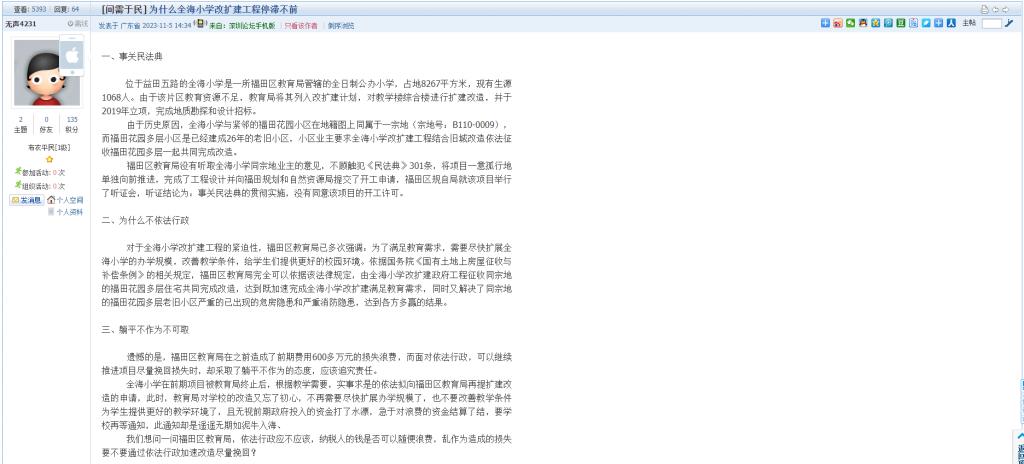 12、帖文《为什么全海小学改扩建工程停滞不前》