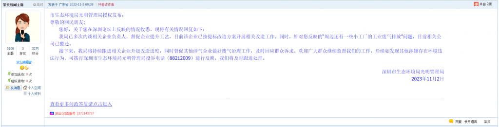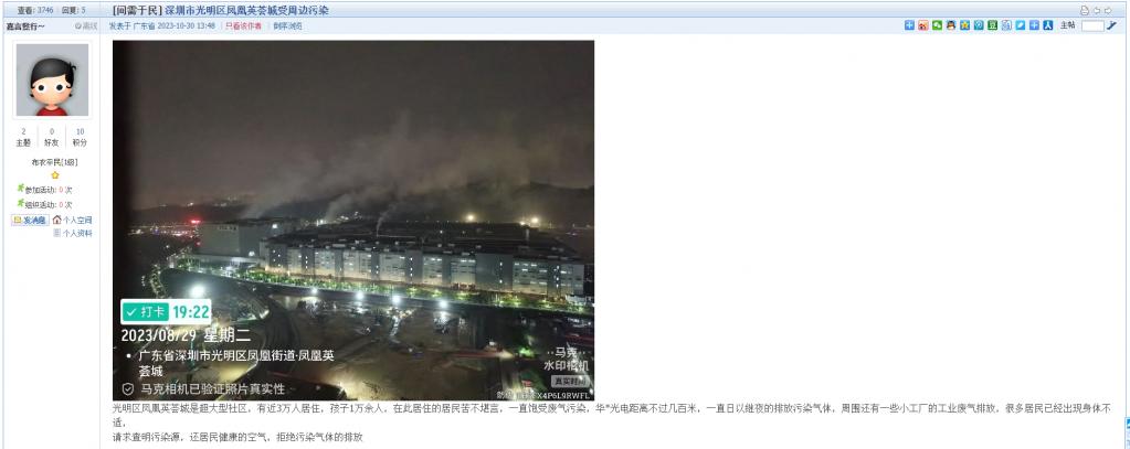 1、帖文《深圳市光明区凤凰英荟城受周边污染》