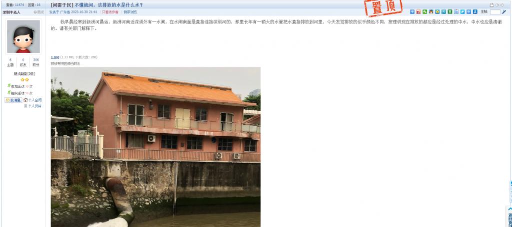 网友您好,收到您反映的问题后,深圳市福田区水务局高度重视,立即进行调查核实,现将调查情况回复如下: