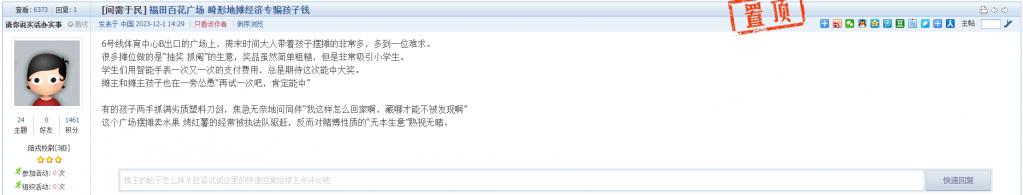 10、帖文《福田百花广场 畸形地摊经济专骗孩子钱》