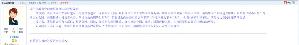 2、帖文《希望有关部门能补偿占用的公园绿地于民(龙华区九龙山社区)》