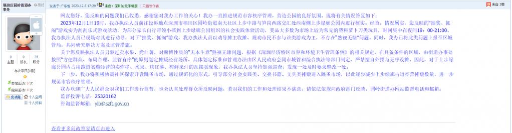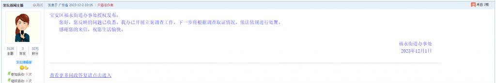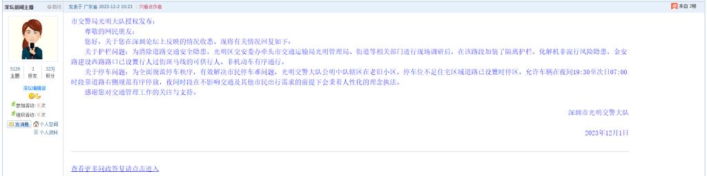 各职能单位如需对网友反映的问题进行回应,可在深圳论坛注册官方账号并通过认证,回帖进行回应。