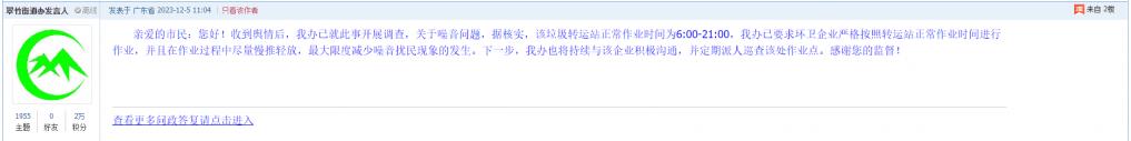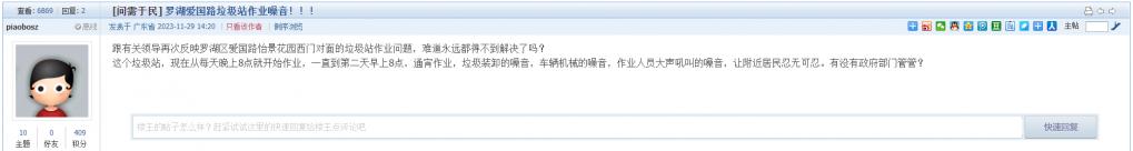 4、帖文《罗湖爱国路垃圾站作业噪音!》
