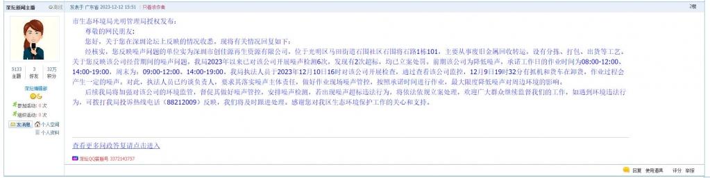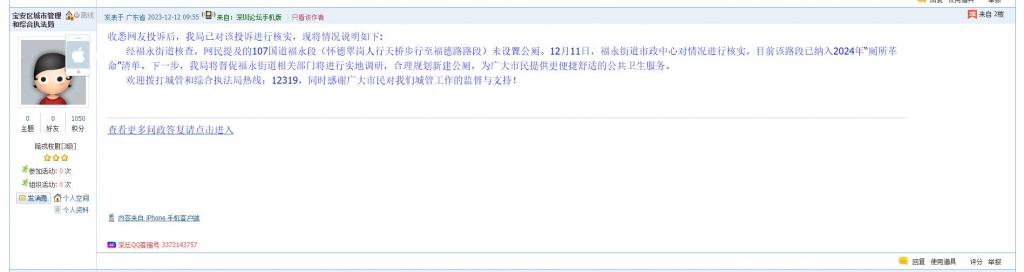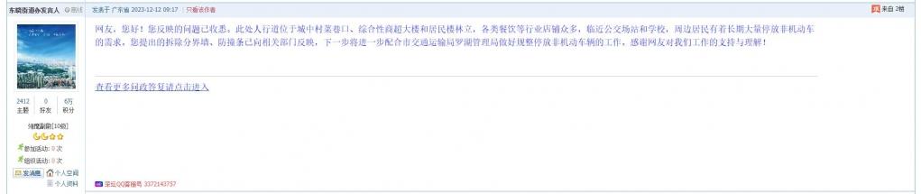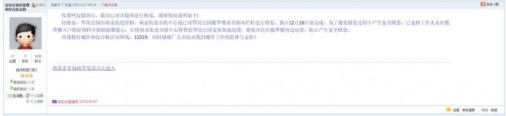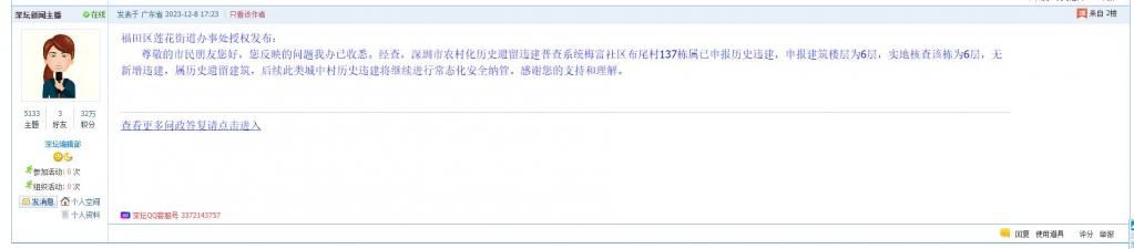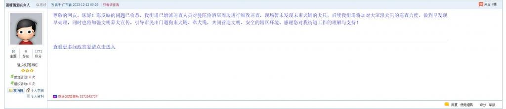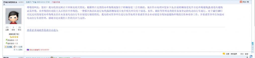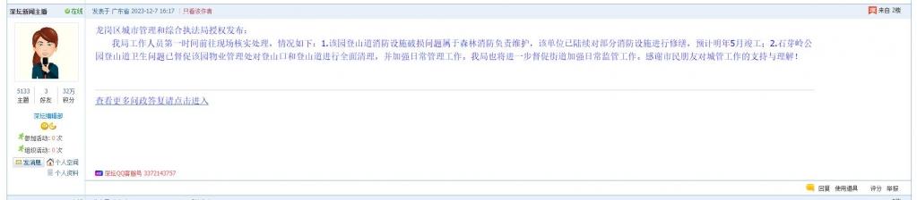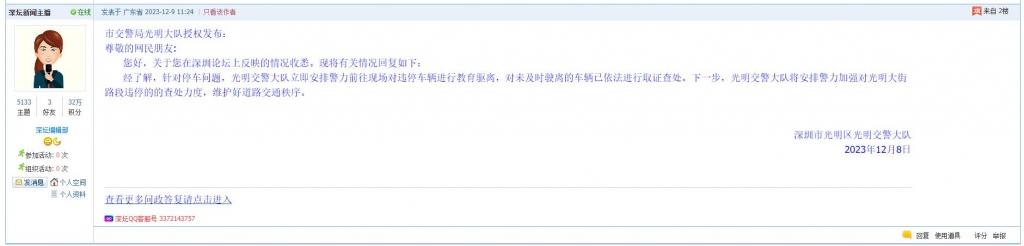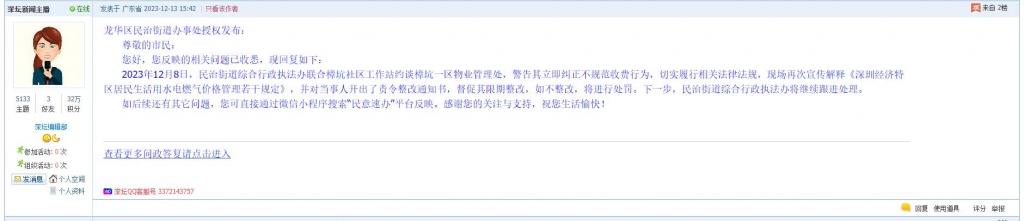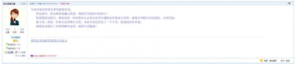 各职能单位如需对网友反映的问题进行回应,可在深圳论坛注册官方账号并通过认证,回帖进行回应。