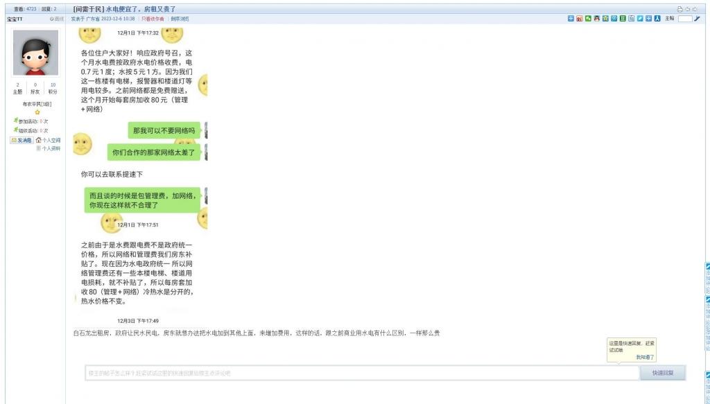 7、帖文《水电便宜了,房租又贵了》