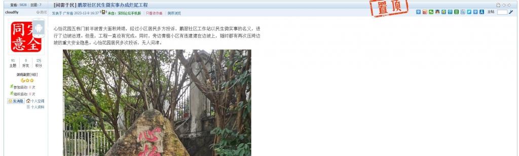 16、帖文《鹏翠社区民生微实事办成烂尾工程》