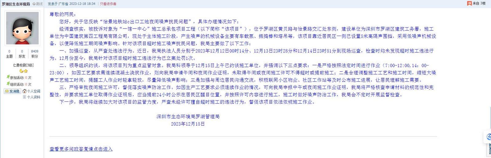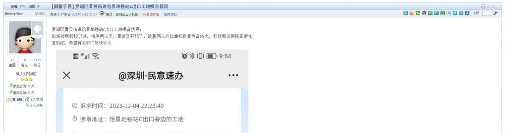 22、帖文《罗湖区黄贝街道怡景地铁站c出口工地噪音扰民》