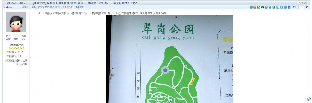 6、帖文《深圳宝安福永怀德“翠岗”公园——揽翠楼!栏杆坏了,应及时修缮才对吧!》