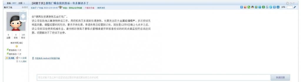 18、帖文《废铁厂噪音扰民投诉一年多解决不了》