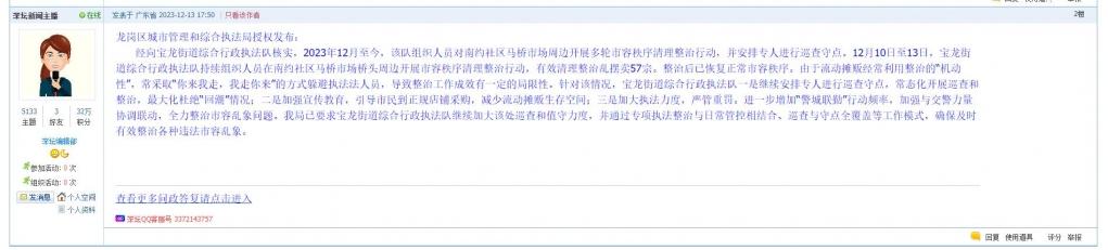 据统计,2023年12月4日-12月10日,网友在深圳论坛发布问政类帖文共50篇,得到相关单位正式回应的帖文数为24篇。