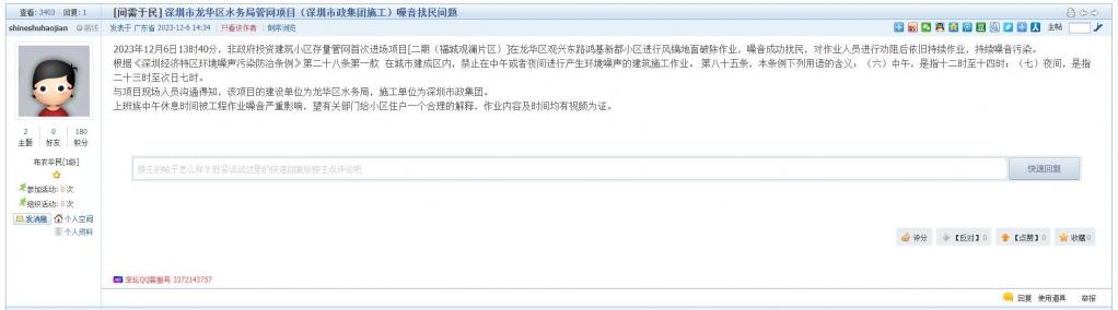 8、帖文《深圳市龙华区水务局管网项目(深圳市政集团施工)噪音扰民问题》