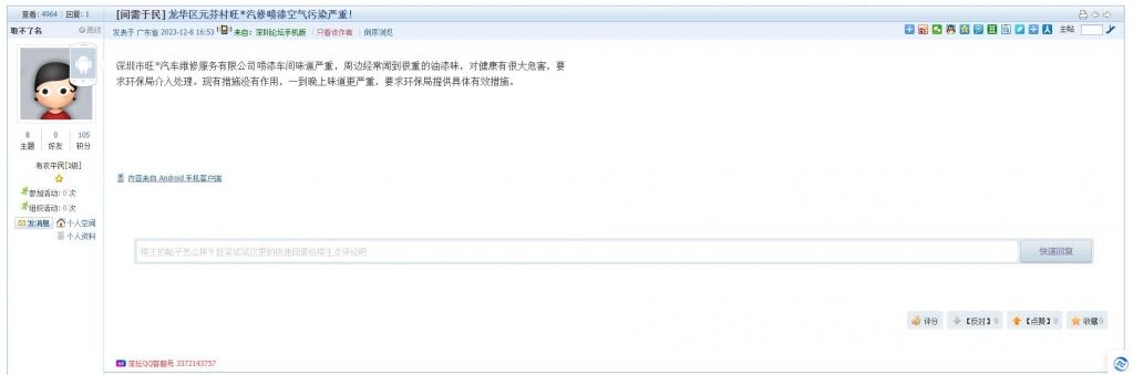 14、帖文《龙华区元芬村旺*汽修喷漆空气污染严重!》