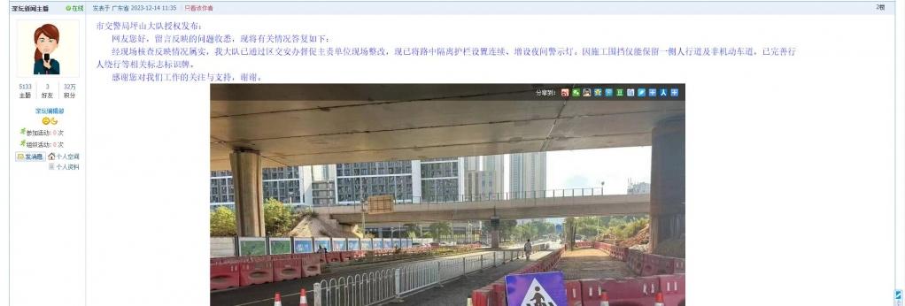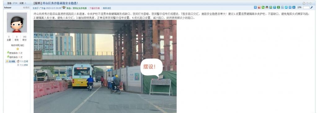 5、帖文《坪山区秀沙路道路安全隐患!》