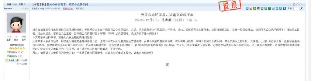 20、帖文《要关心市民需求、适建公众洗手间》