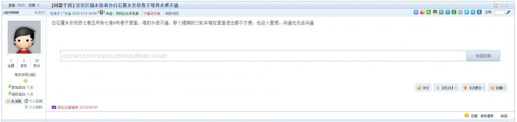 17、帖文《宝安区福永街道办白石厦永安坊巷子堵得水泄不通》