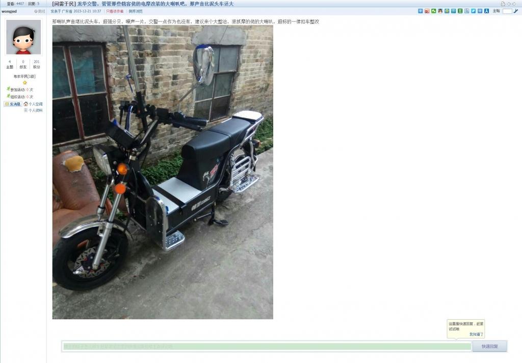6、帖文《龙华交警,管管那些载客佬的电摩改装的大喇叭吧,那声音比泥头车还大》
