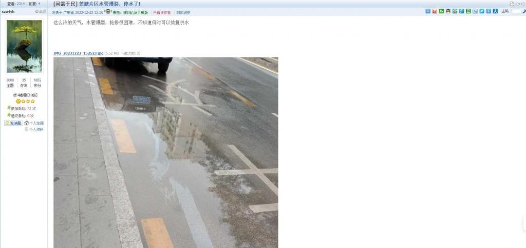 8、帖文《莲塘片区水管爆裂,停水了!》