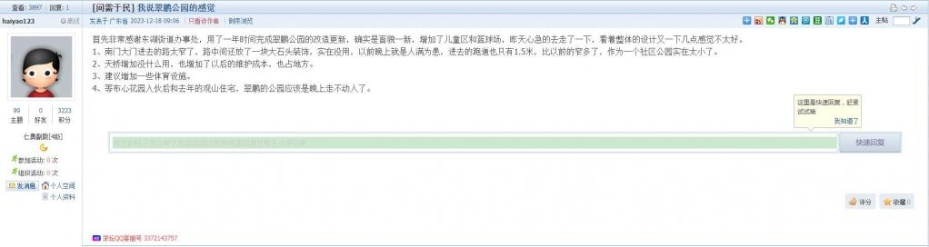 1、帖文《我说翠鹏公园的感觉》