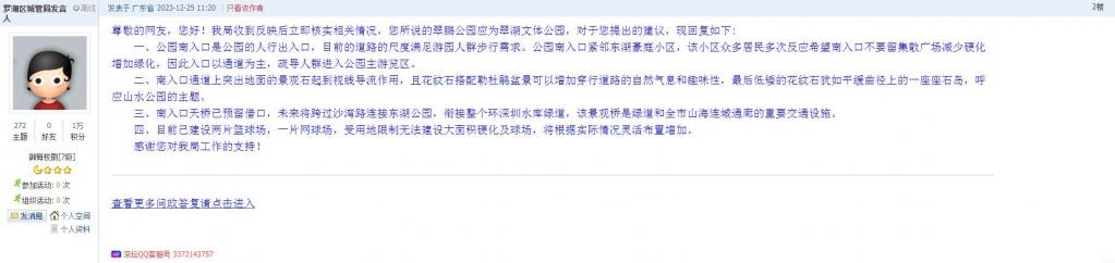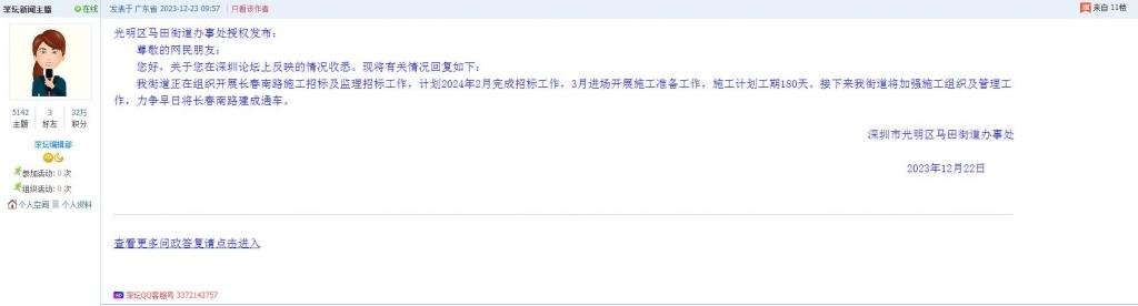 各职能单位如需对网友反映的问题进行回应,可在深圳论坛注册官方账号并通过认证,回帖进行回应。