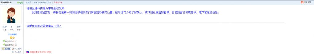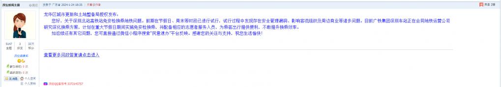 各职能单位如需对网友反映的问题进行回应,可在深圳论坛注册官方账号并通过认证,回帖进行回应。