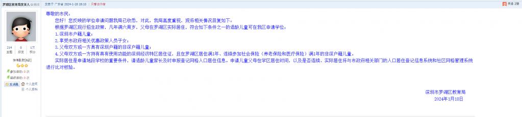 2、帖文《罗湖区中小学学位申请关于实际居住》