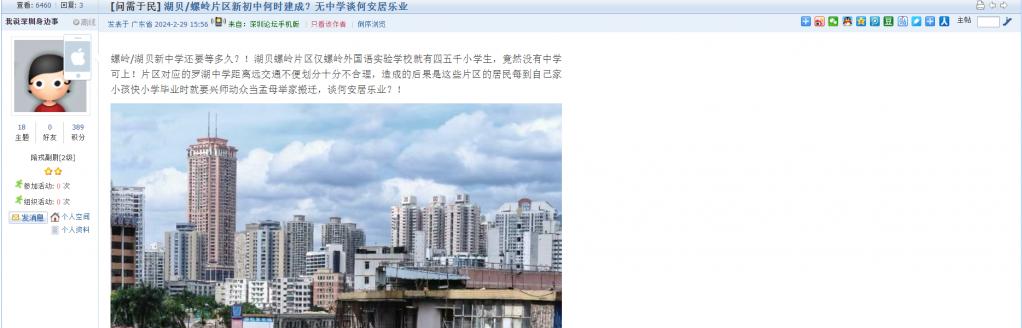 4、帖文《湖贝/螺岭片区新初中何时建成?无中学谈何安居乐业》