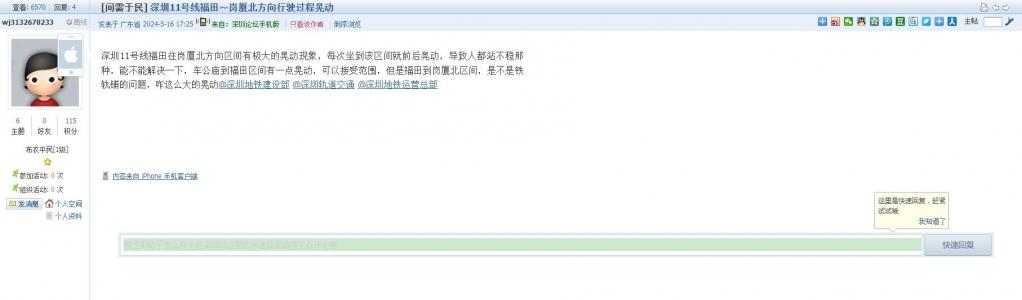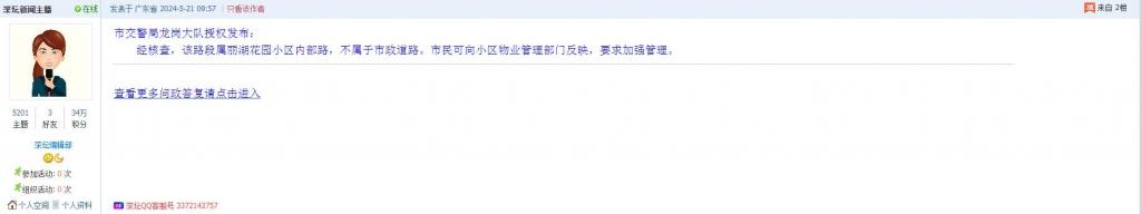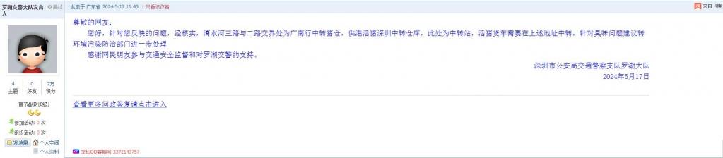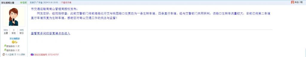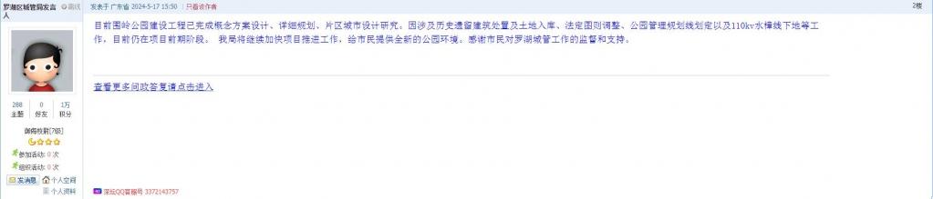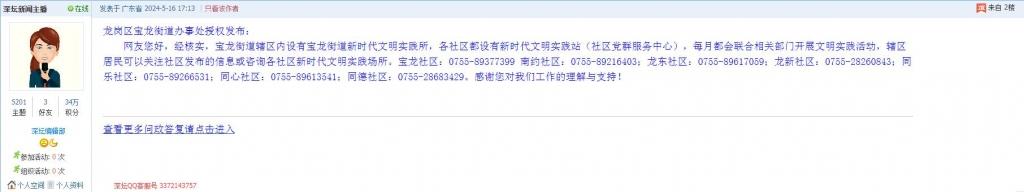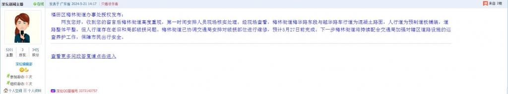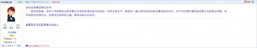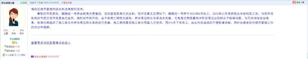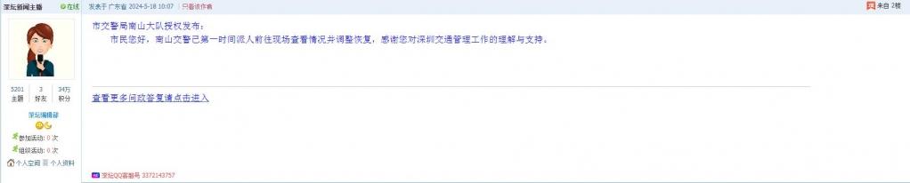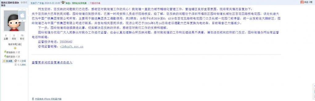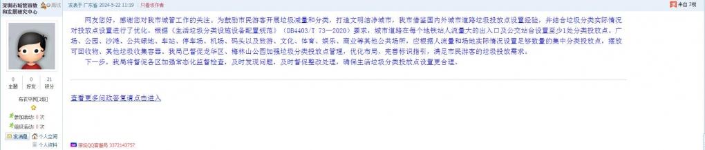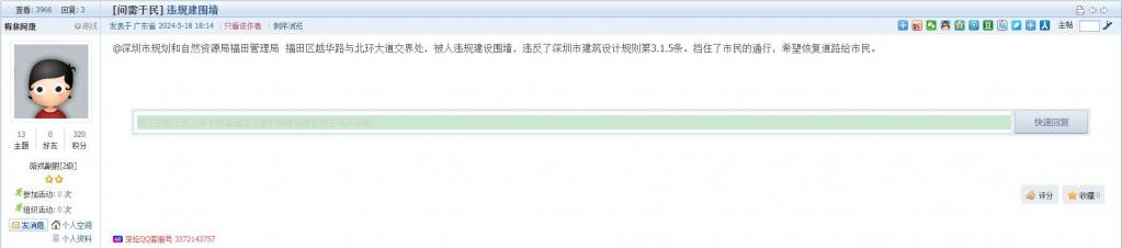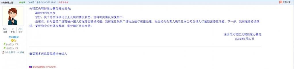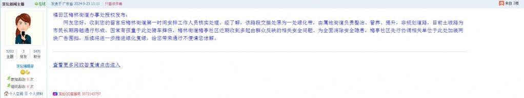各职能单位如需对网友反映的问题进行回应,可在深圳论坛注册官方账号并通过认证,回帖进行回应。