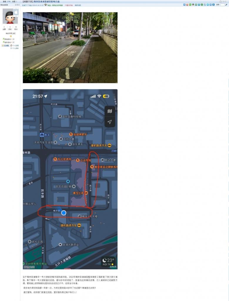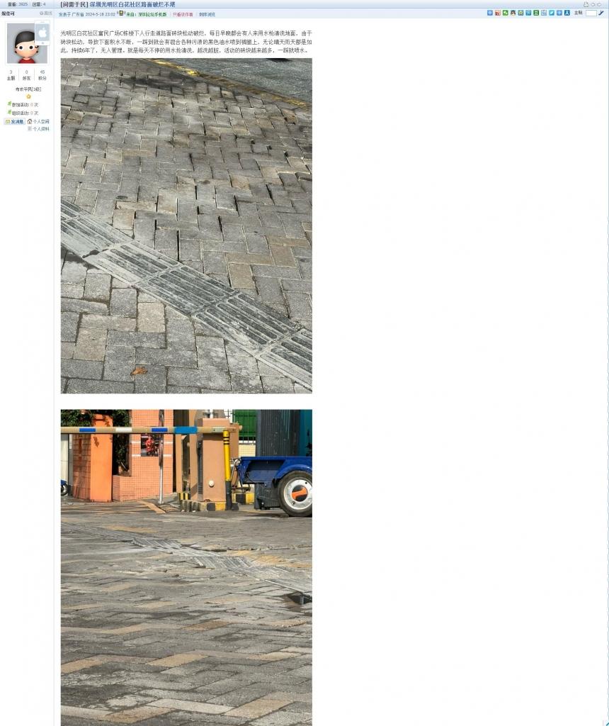 17、帖文《深圳光明区白花社区路面破烂不堪》
