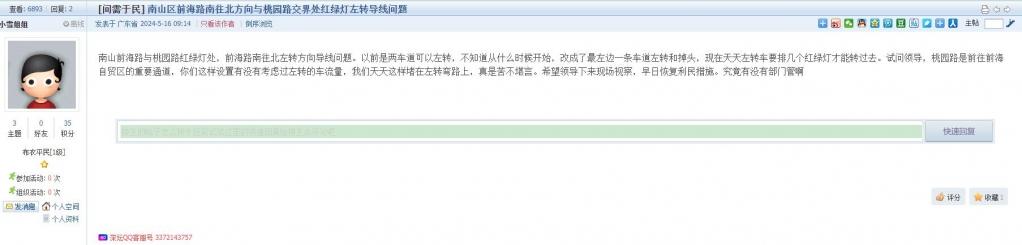 6、帖文《南山区前海路南往北方向与桃园路交界处红绿灯左转导线问题》