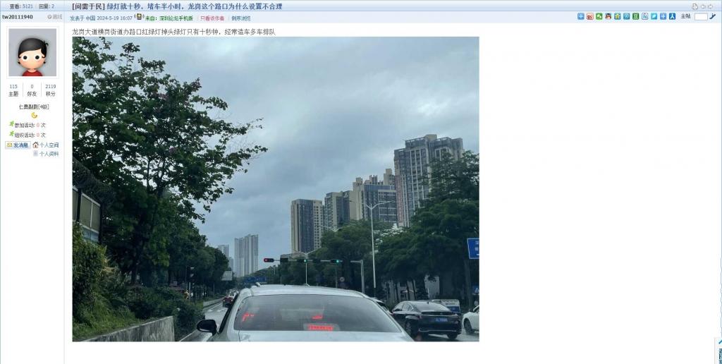 16、帖文《绿灯就十秒,堵车半小时,龙岗这个路口为什么设置不合理》