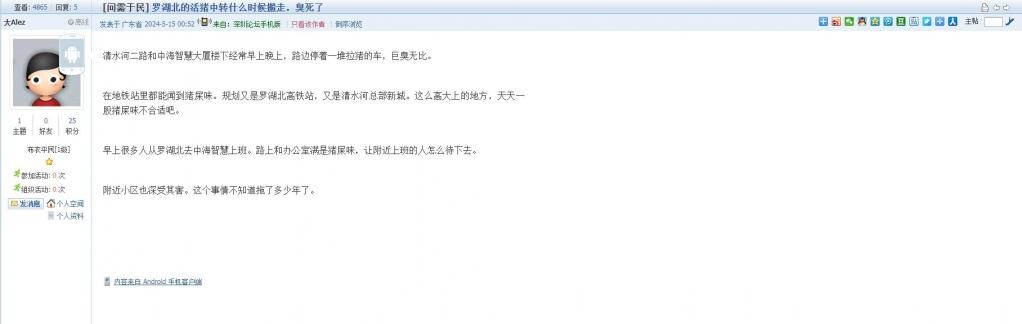 4、帖文《罗湖北的活猪中转什么时候搬走,臭死了》