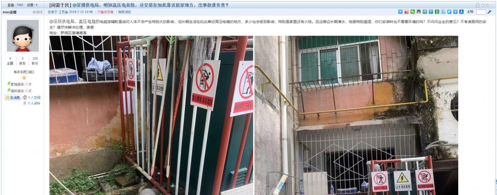 2. 帖文《@深圳供电局,明知高压电危险,还安装在如此靠近居家地方,出事故谁负责?》