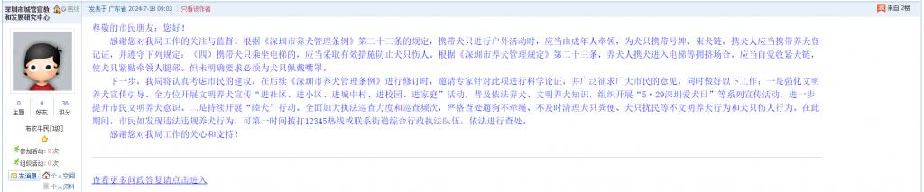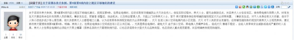 1. 帖文《关于深圳市养犬条例,第4章第4项内容之规定不够细化的建议》