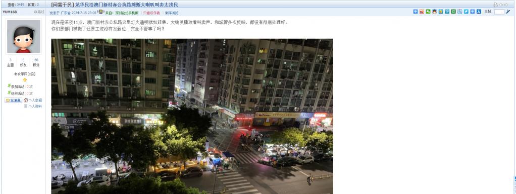 13. 帖文《龙华民治澳门新村赤公坑路摊贩大喇叭叫卖太扰民》