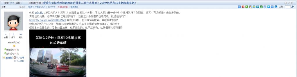 3. 帖文《看看在论坛反映问题两周后甘李二路什么情况(2分钟仍然有10多辆加塞车辆)》