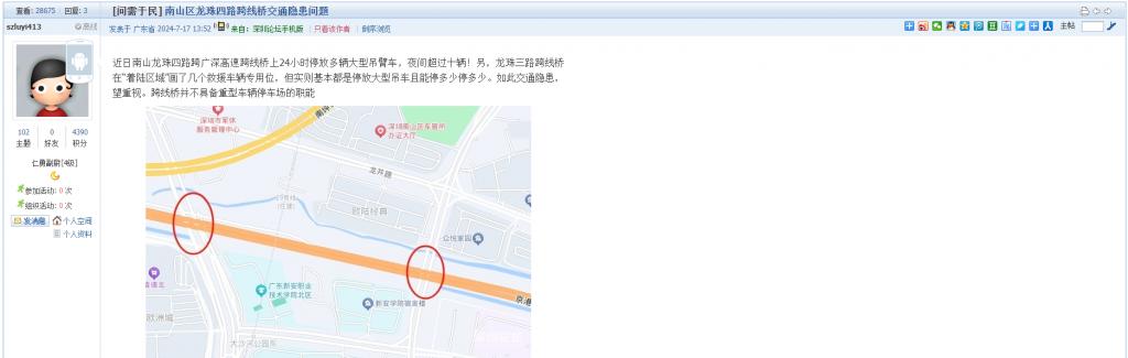 19. 帖文《南山区龙珠四路跨线桥交通隐患问题》