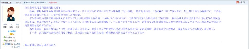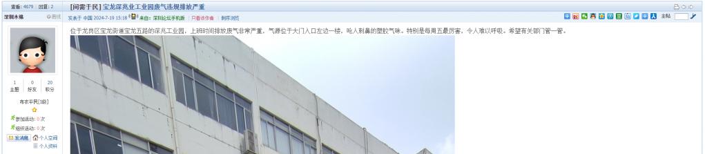 10. 帖文《宝龙深兆业工业园废气违规排放严重》