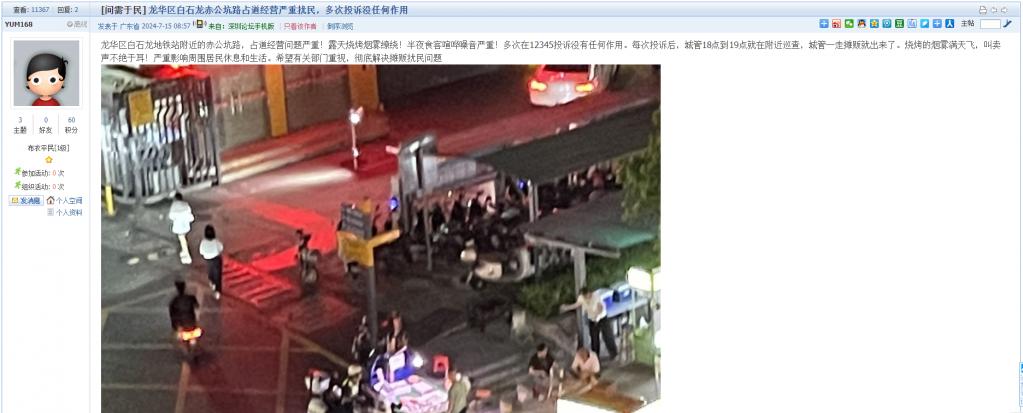 11. 帖文《龙华区白石龙赤公坑路占道经营严重扰民,多次投诉没任何作用》
