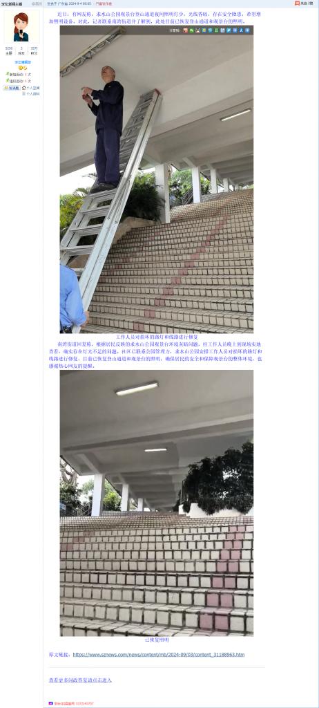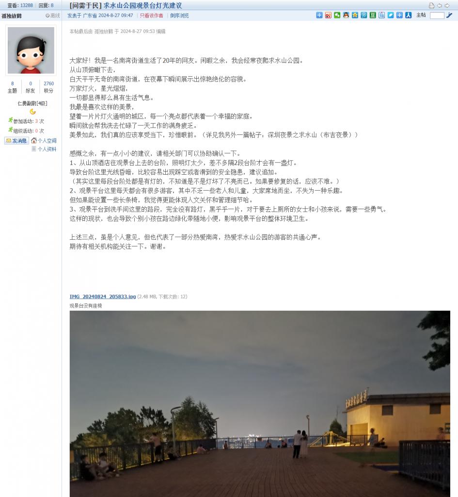 9. 帖文《求水山公园观景台灯光建议》