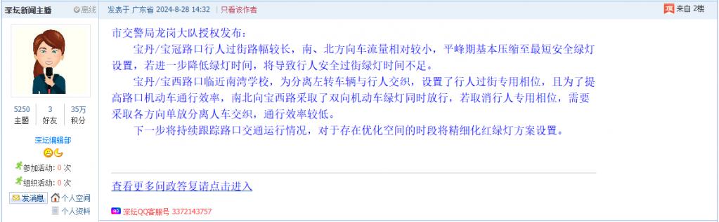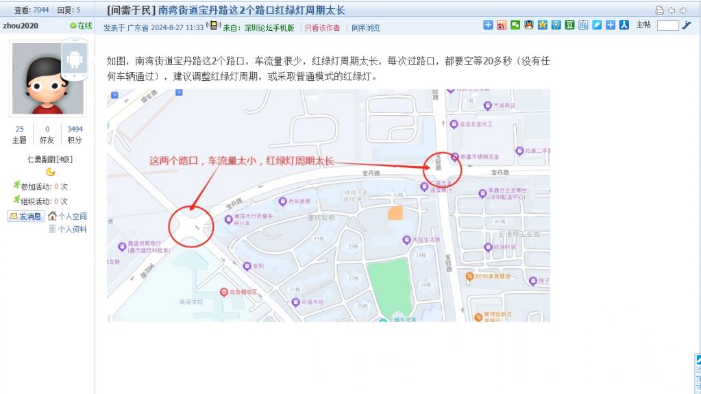 4. 帖文《南湾街道宝丹路这2个路口红绿灯周期太长》