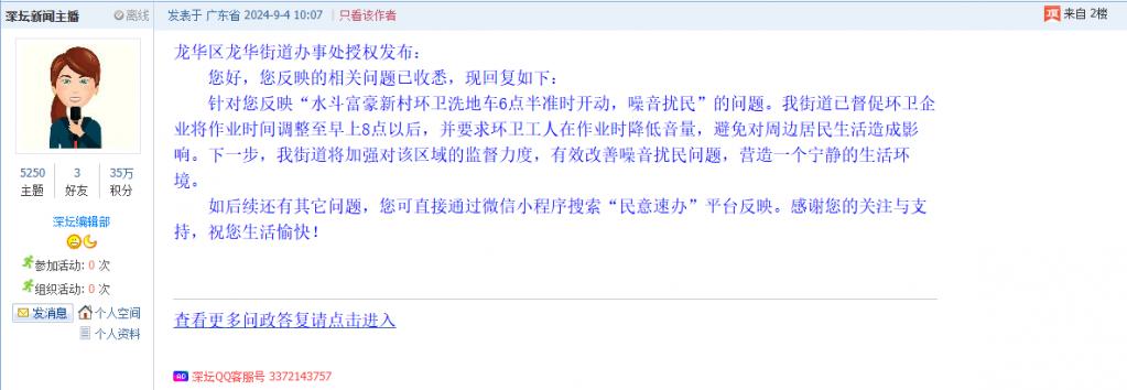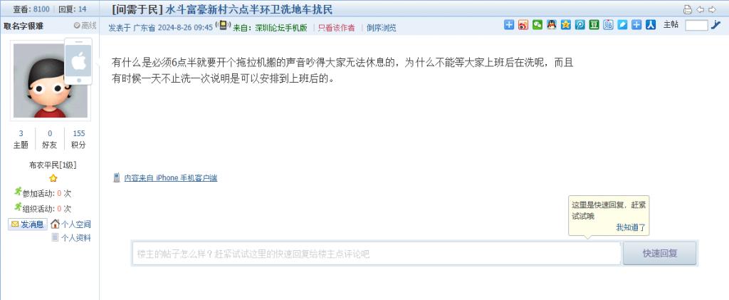 10. 帖文《水斗富豪新村六点半环卫洗地车扰民》