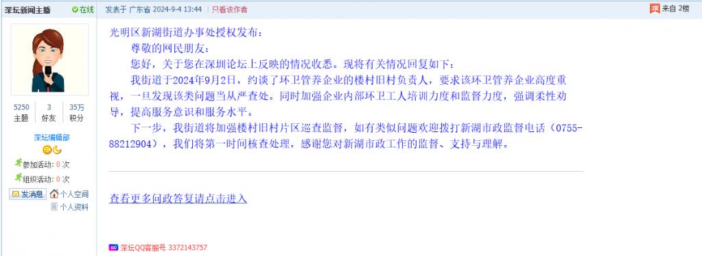 您好,关于您在深圳论坛上反映的情况收悉。现将有关情况回复如下: