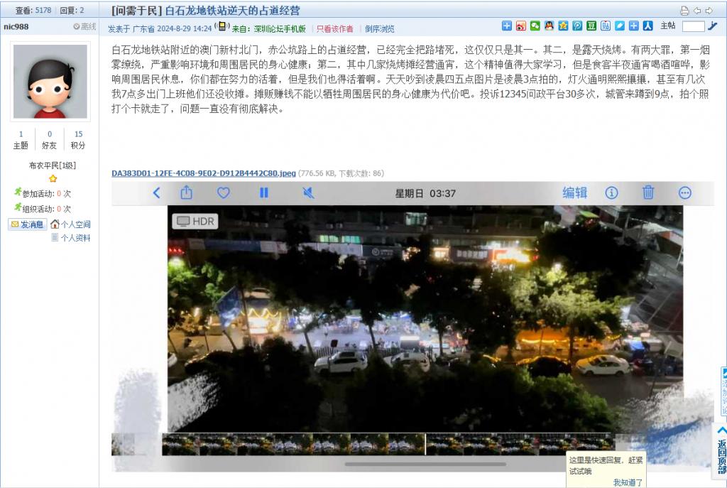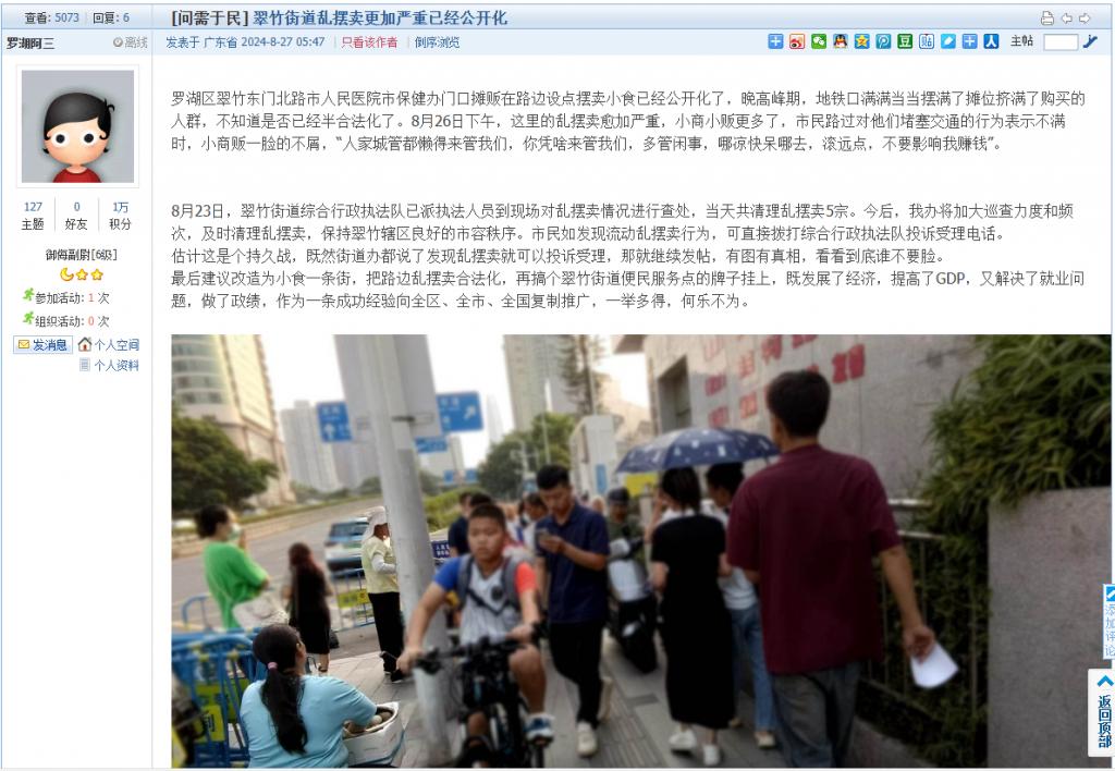 3. 帖文《翠竹街道乱摆卖更加严重已经公开化》