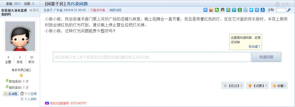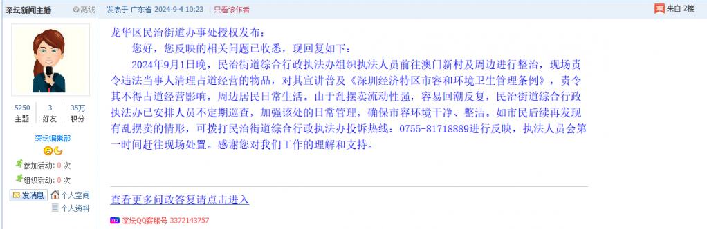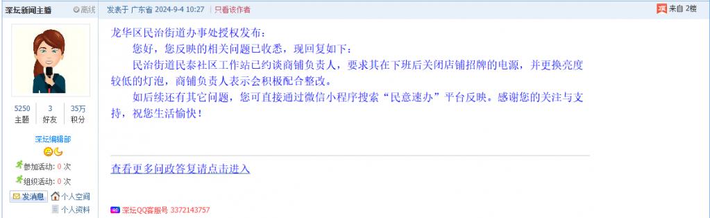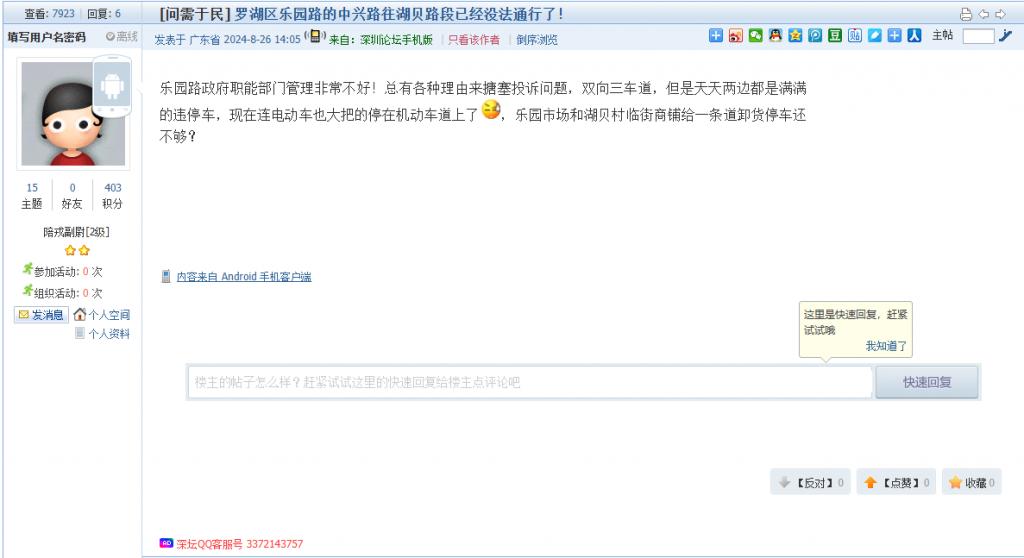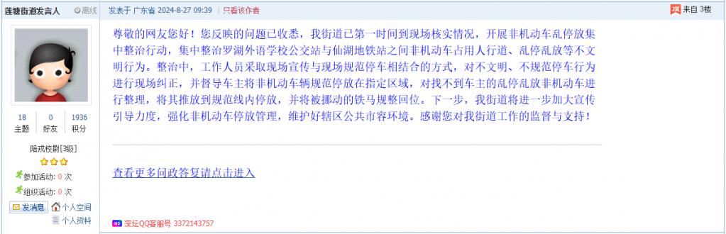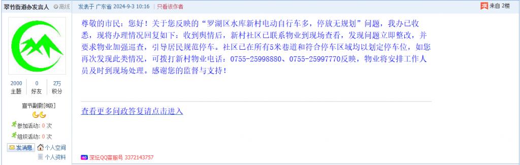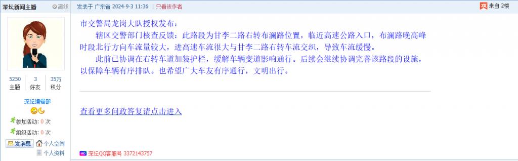 各职能单位如需对网友反映的问题进行回应,可在深圳论坛注册官方账号并通过认证,回帖进行回应。