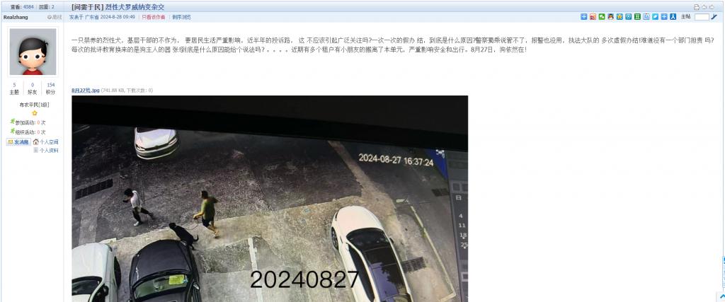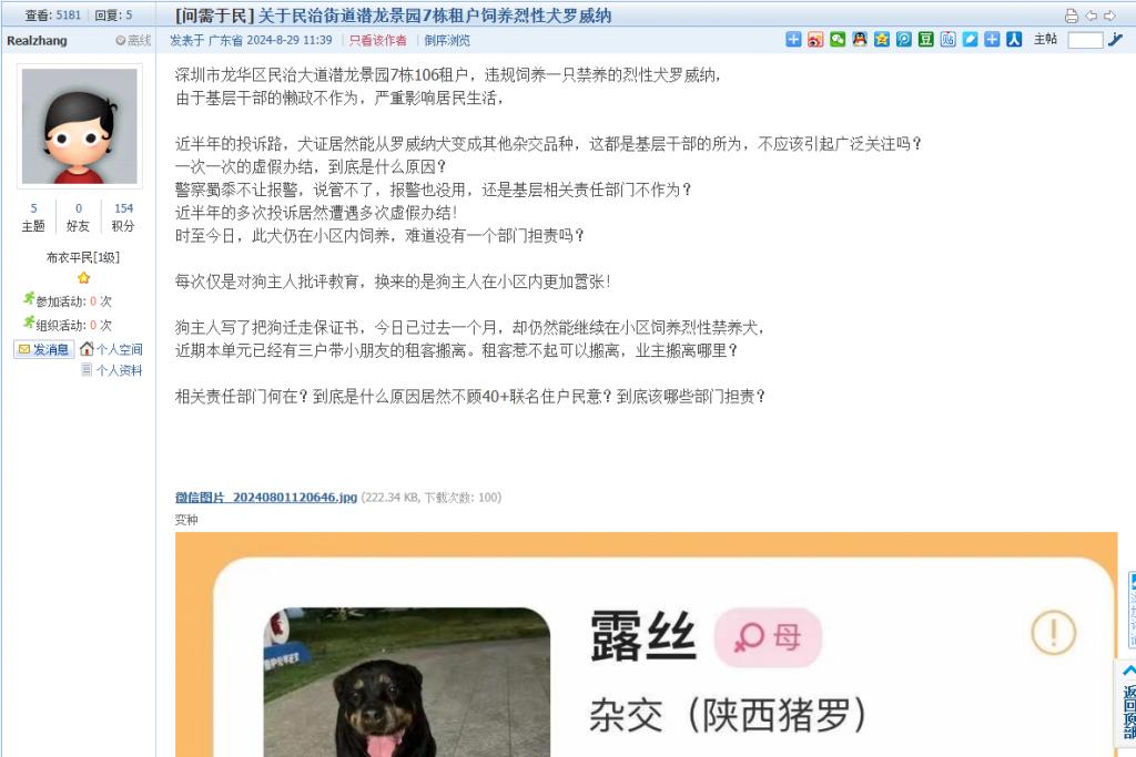 12. 帖文《关于民治街道潜龙景园7栋租户饲养烈性犬罗威纳》