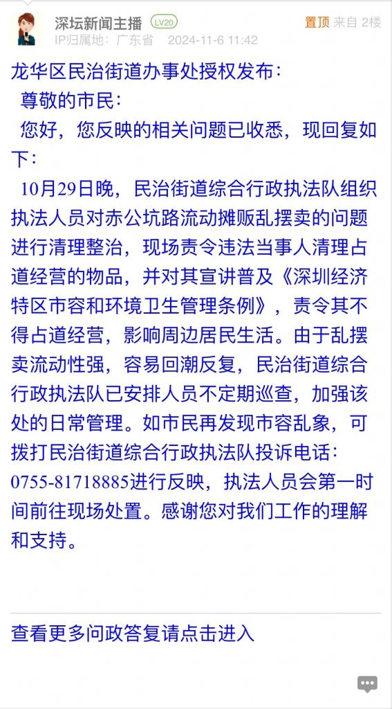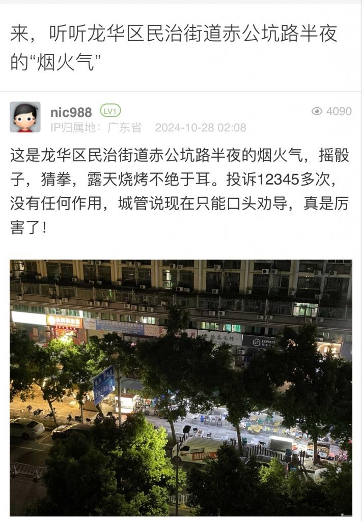 1. 帖文《来,听听龙华区民治街道赤公坑路半夜的“烟火气”》